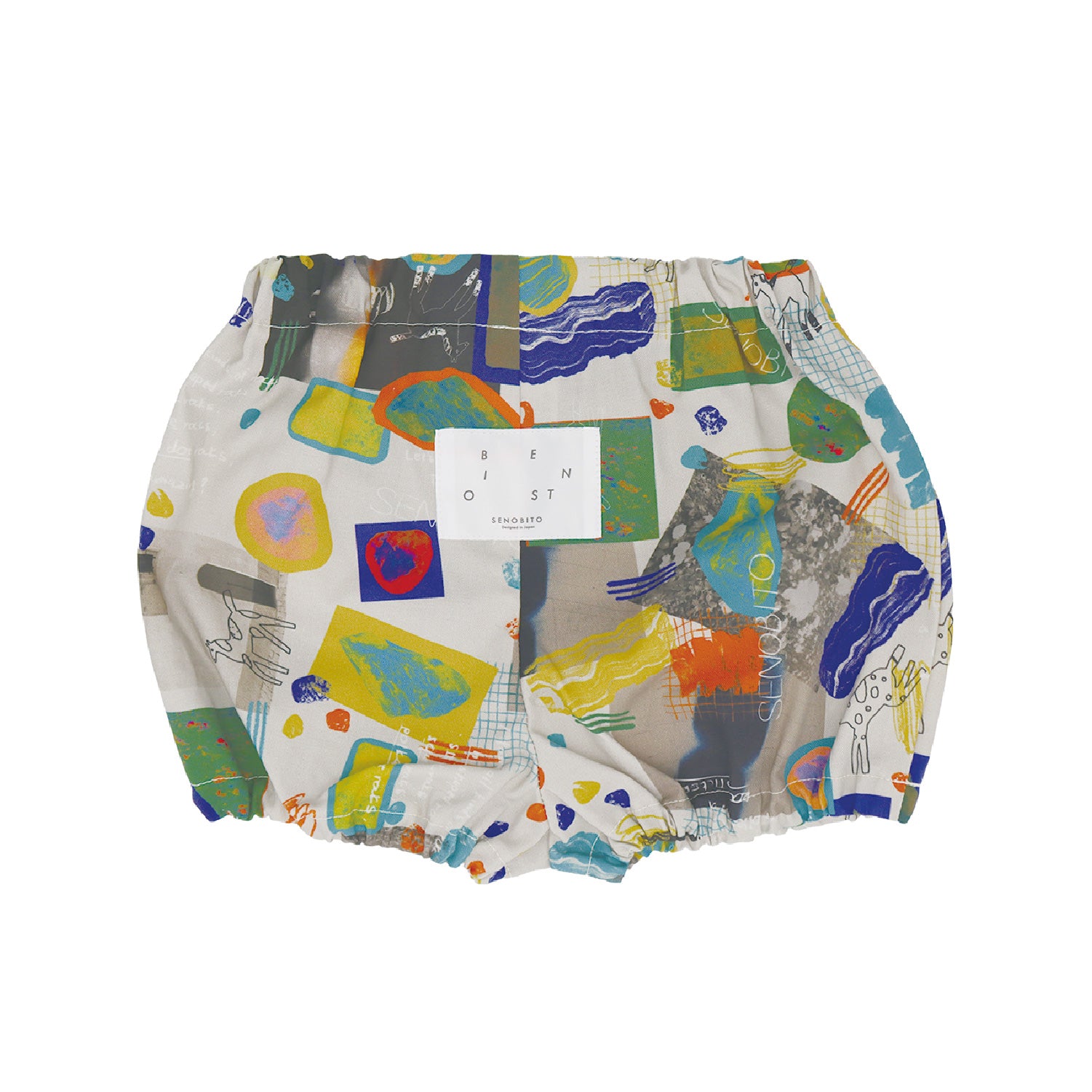 おしりにタグがついた、シンプルなベビーブルマ。