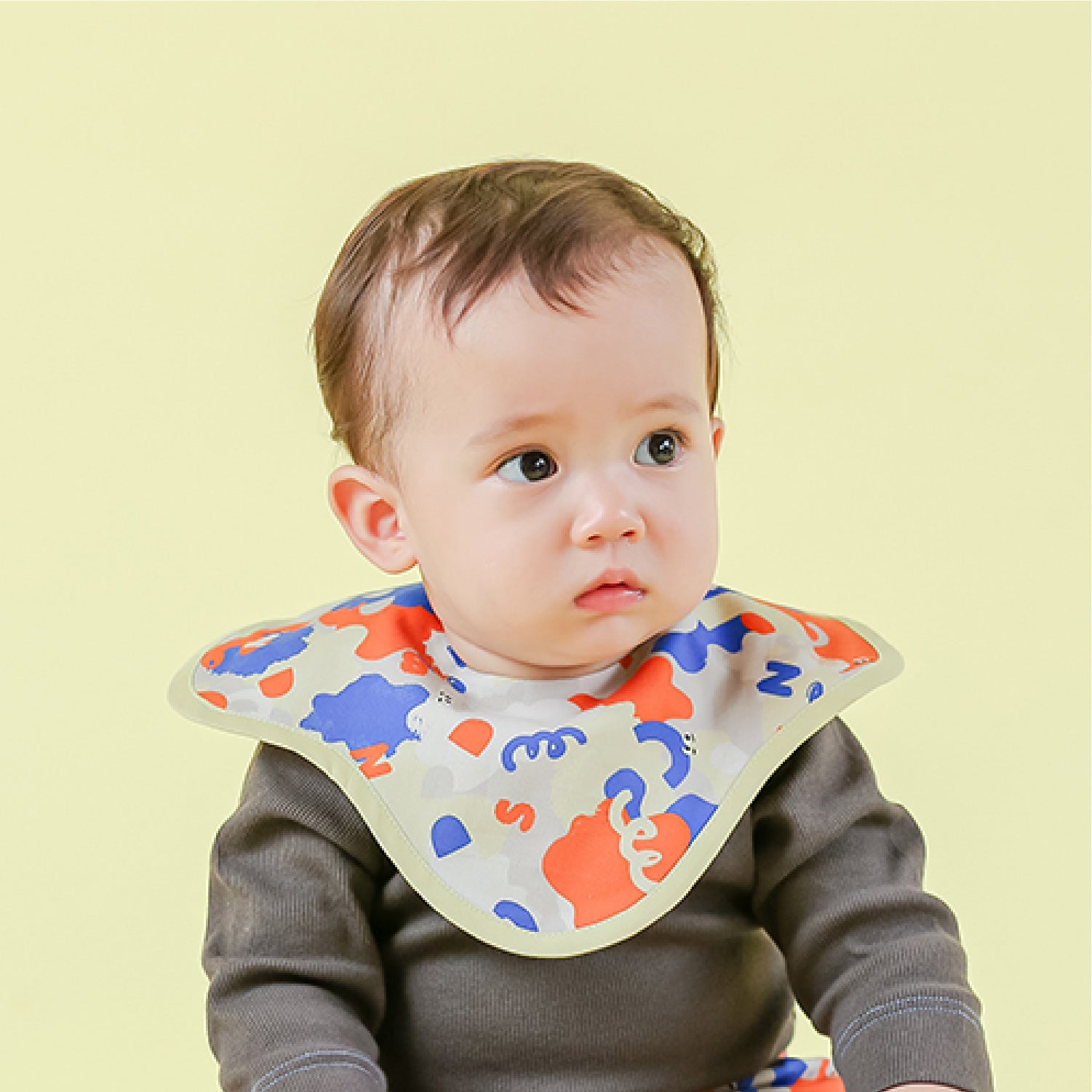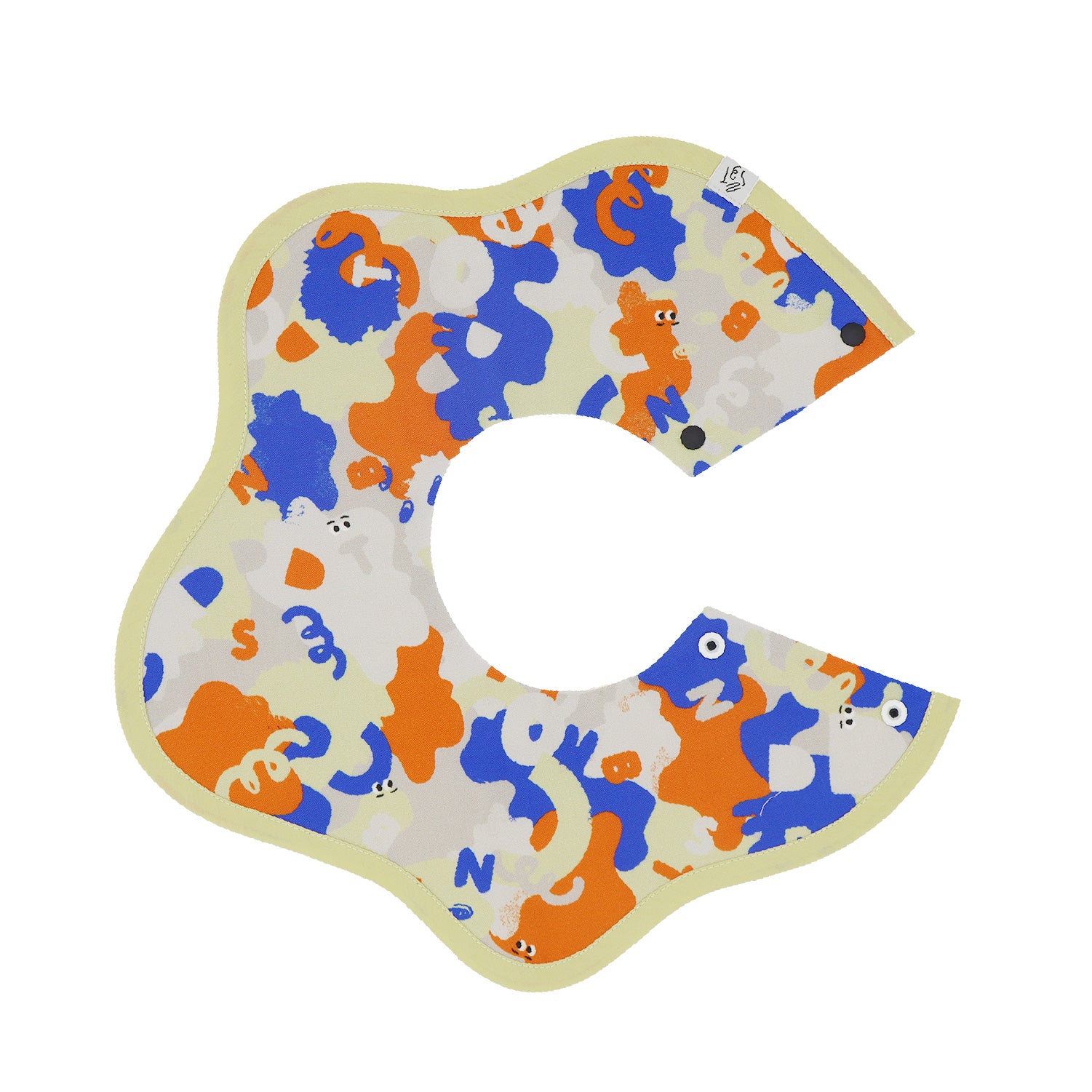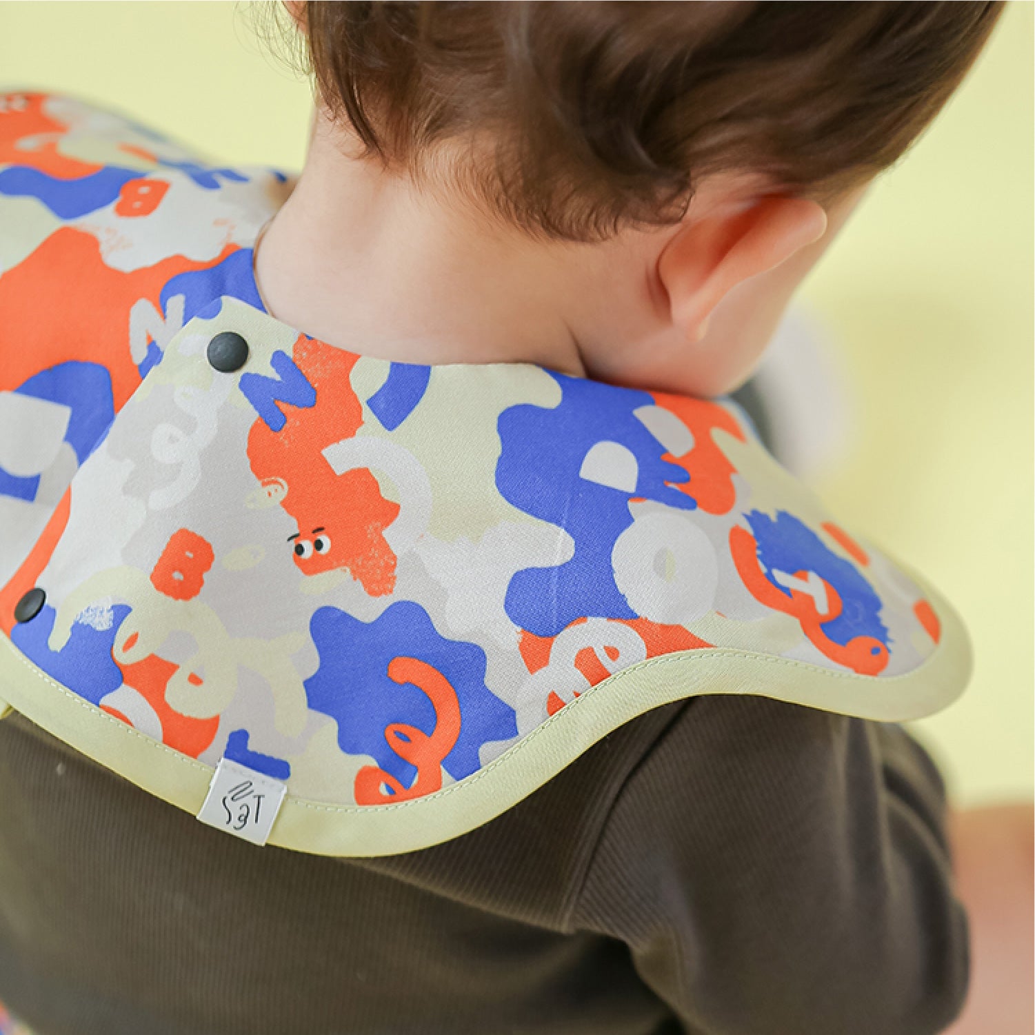 アシンメトリーの形が特徴のベビースタイ。