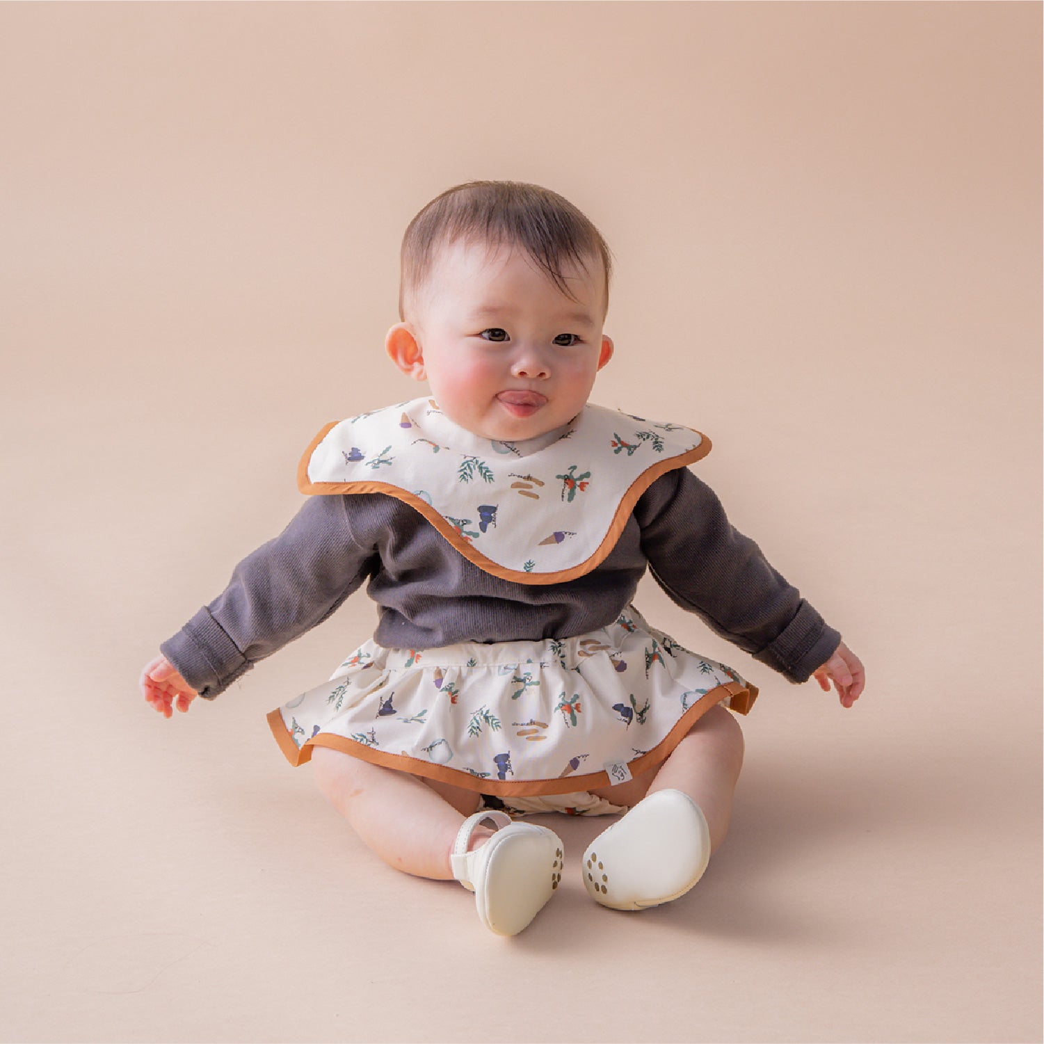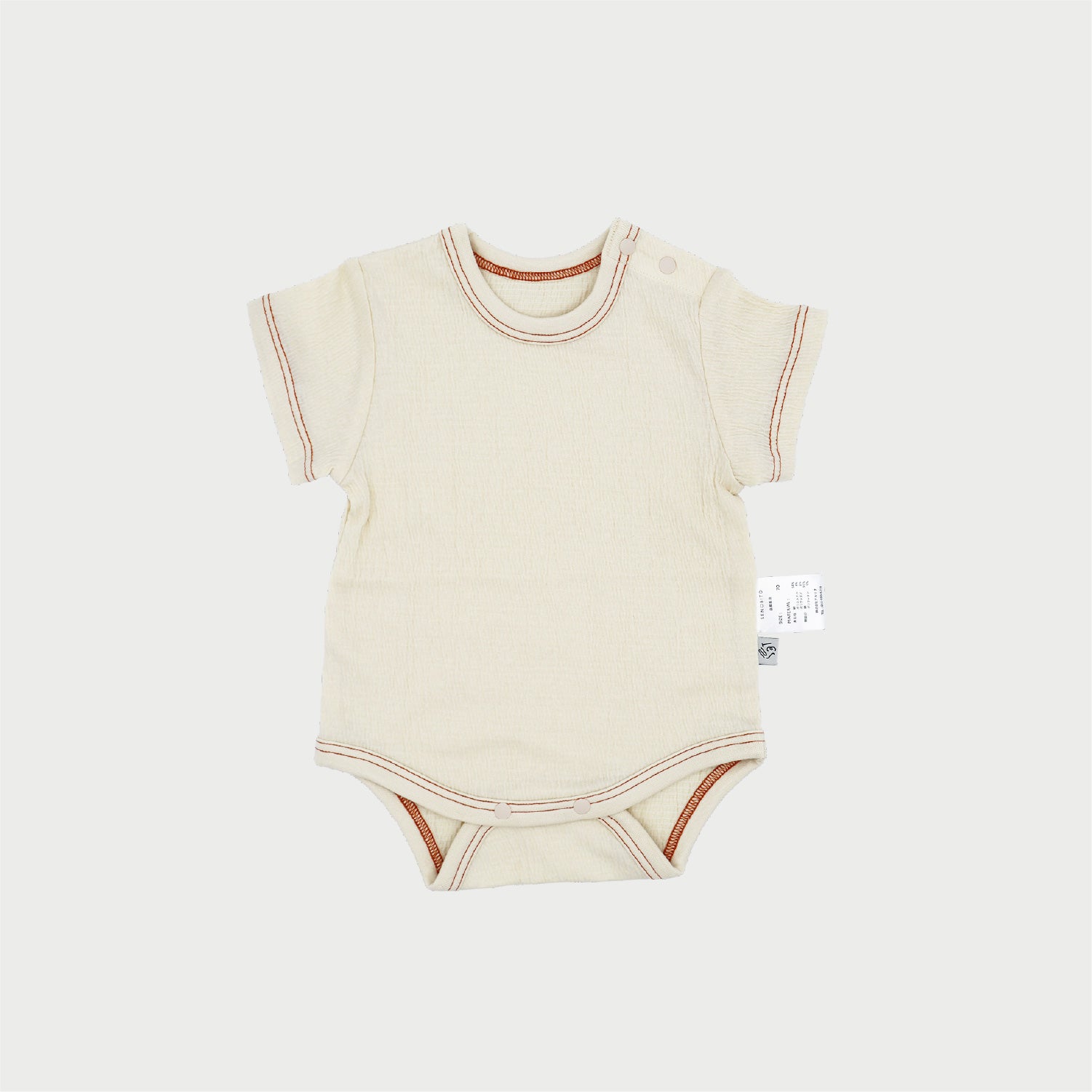 ・シャーリングステッチロンパース ( アイボリー×レッドブラウン )