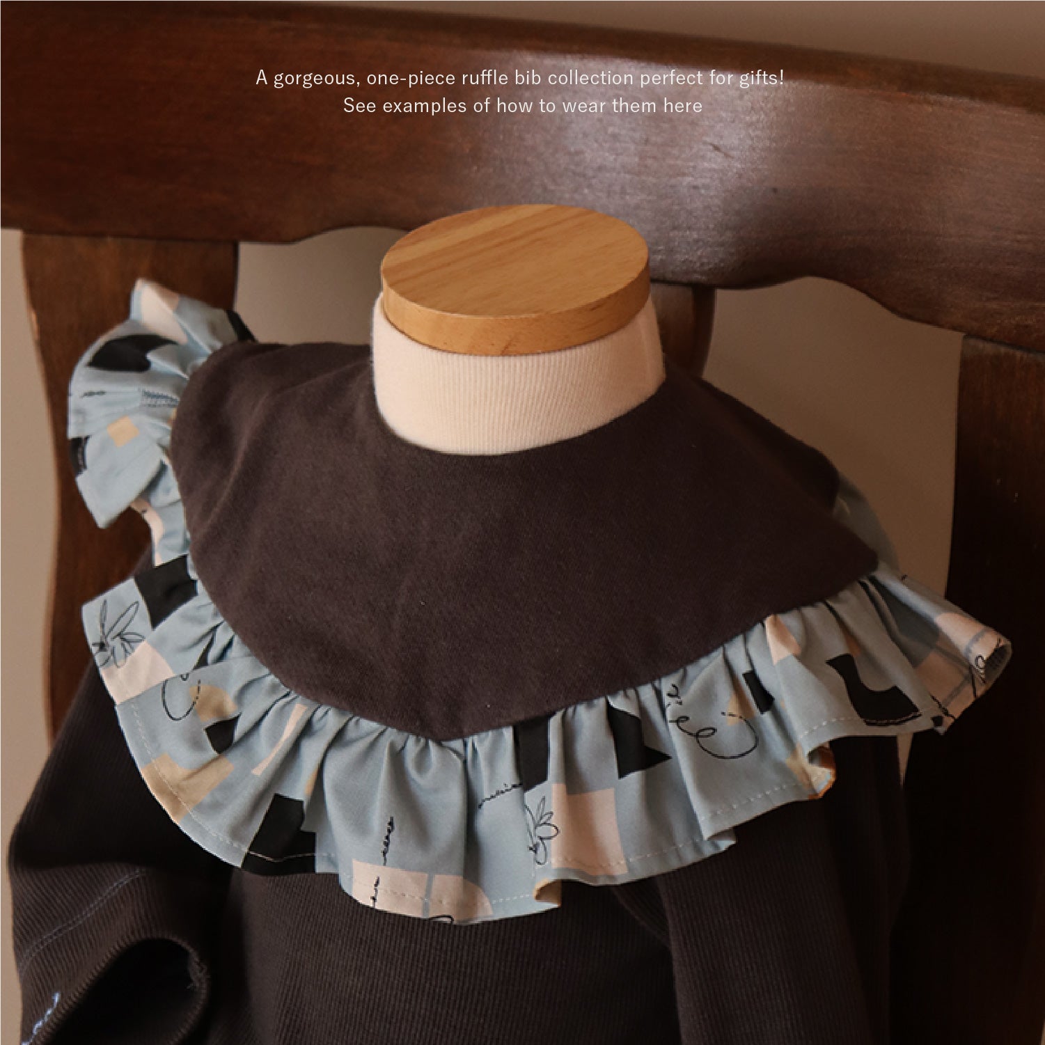1枚で主役級。贅沢に生地を使った、大ぶりのフリルが特徴の「フリルスタイ」です。