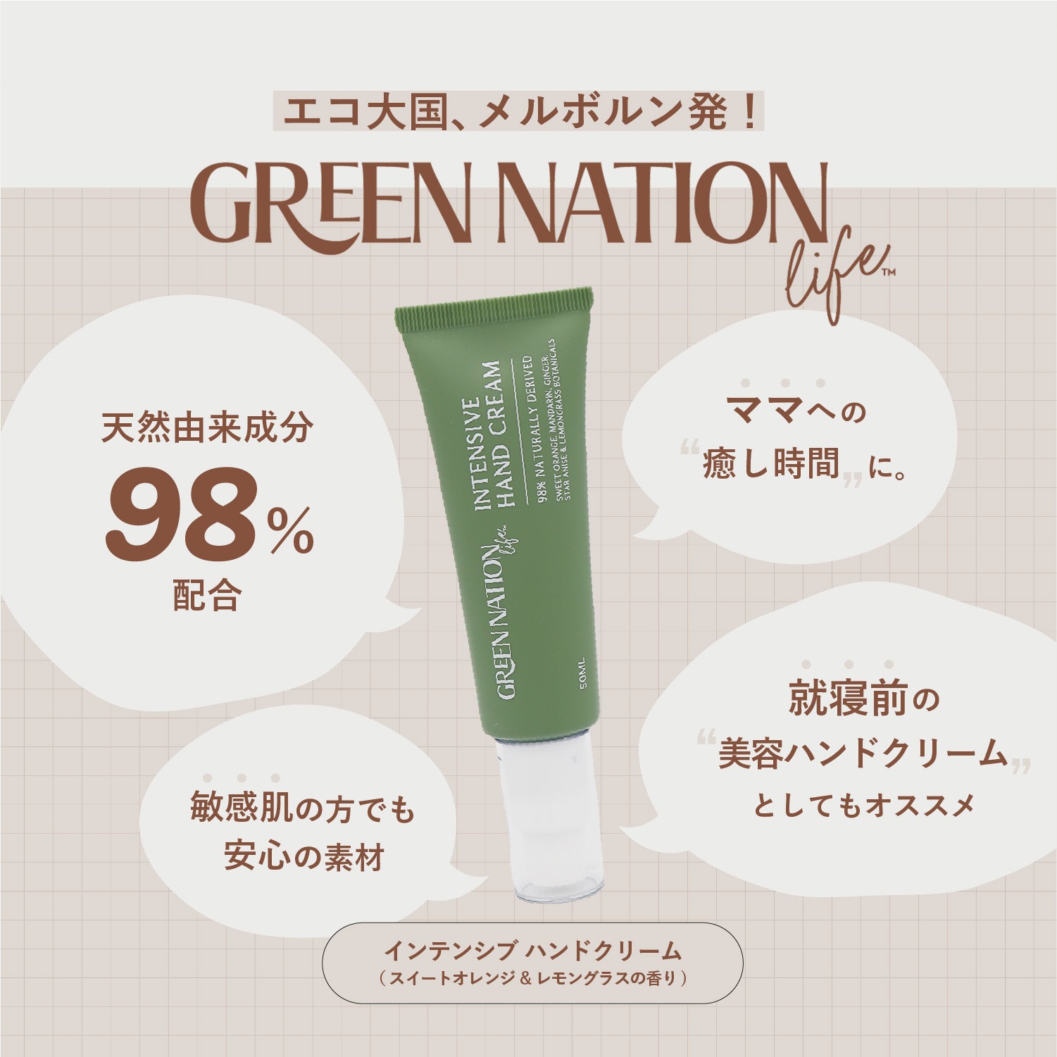 ・GREEN NATION life インテンシブハンドクリーム 50ml ( スイートオレンジ&レモングラスの香り )