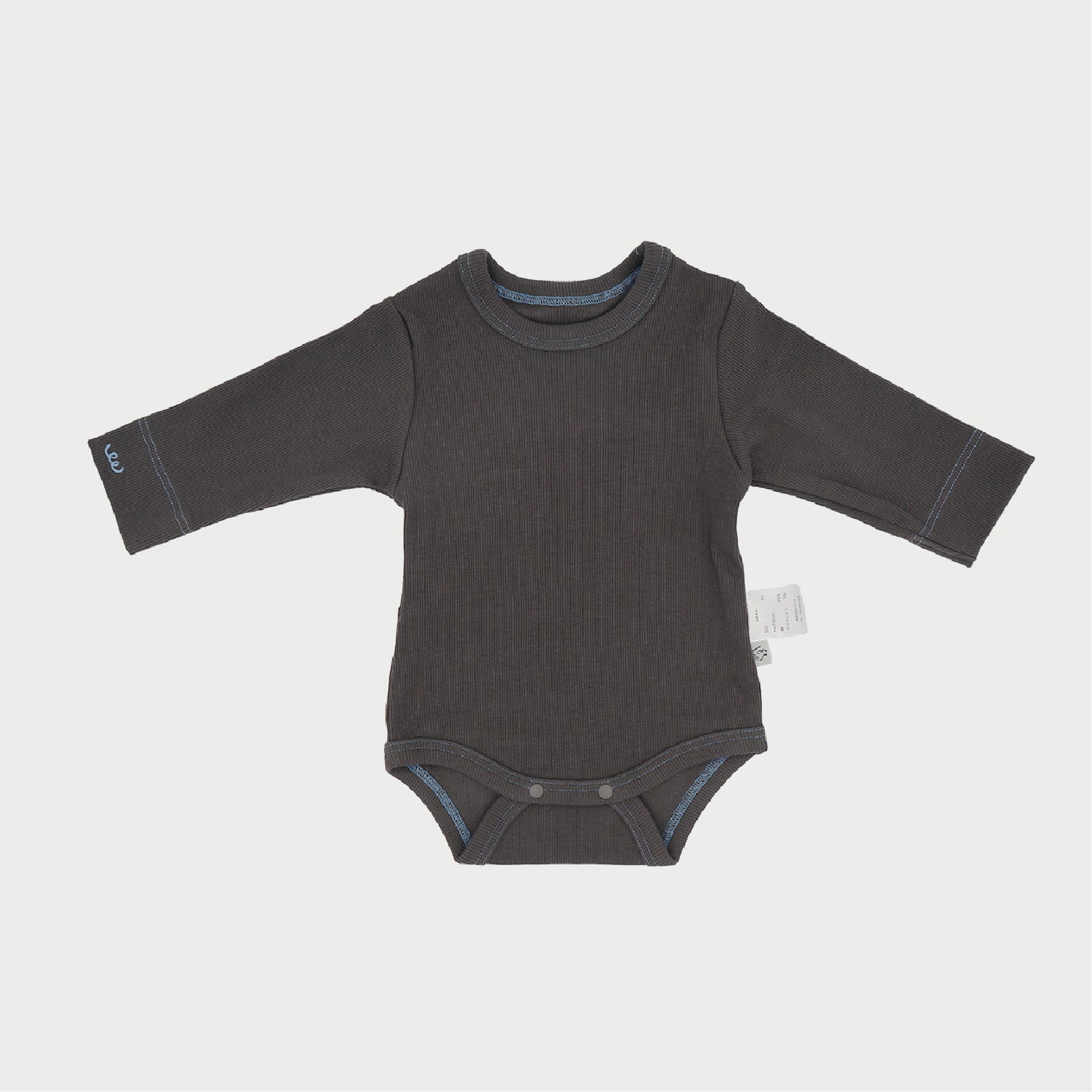 ・リブステッチロンパース (チャコール×ライトブルー )